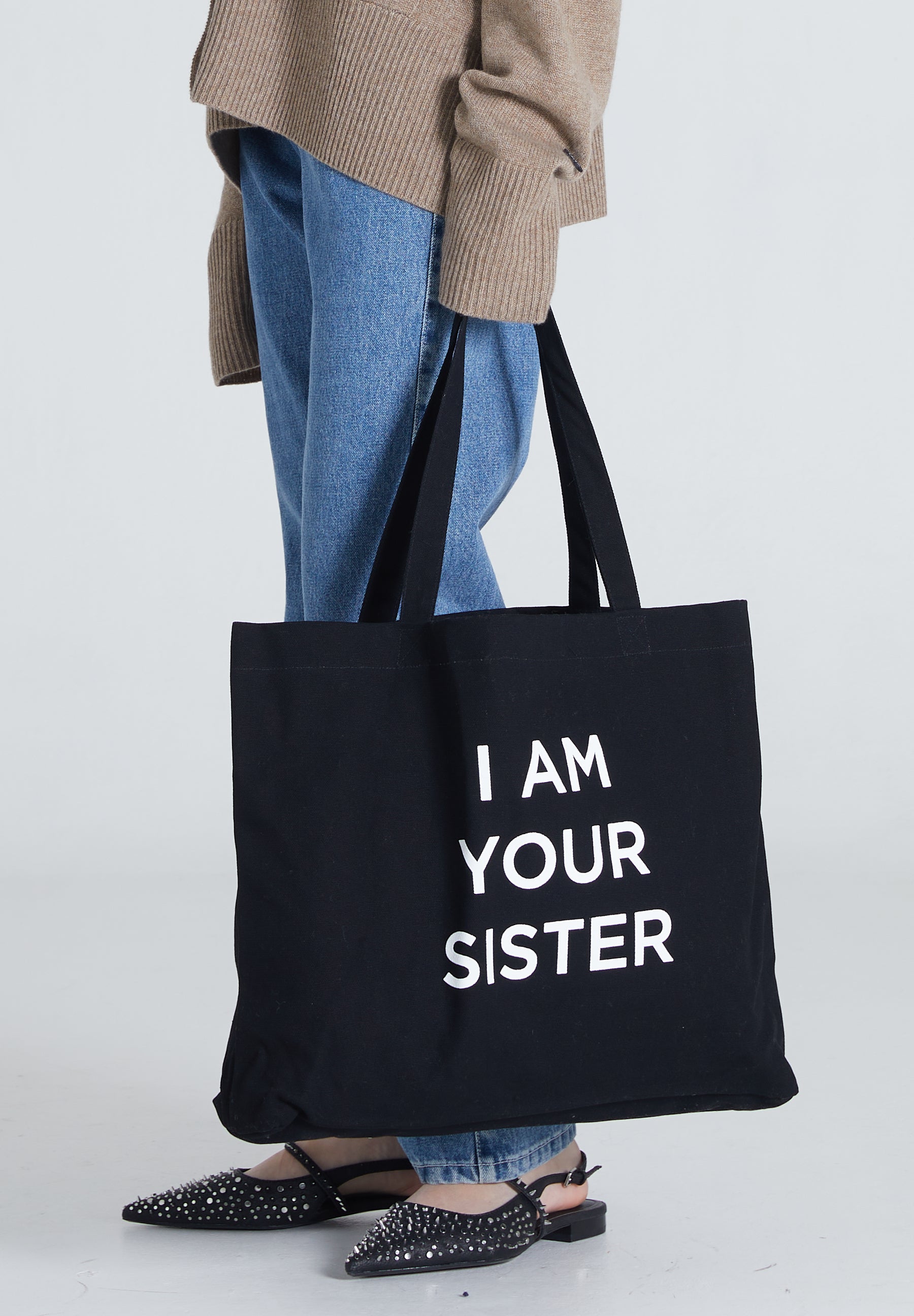 Large Carry-All-Tote Bag in heavy Canvas featuring the printed I AM YOUR SISTER statement. It features a pocket inside to keep your belongings organized.