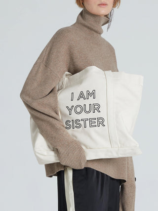 Embroidered with the I AM YOUR SISTER statement in black. Inside a pocket helps keep your essentials organized, while the size fits everything from your laptop to weekend essentials.