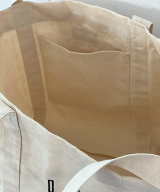 Large Carry-All-Tote Bag in heavy Canvas featuring the I AM YOUR SISTER statement embroidered in black. The bag features a pocket inside to keep your belongings organized.